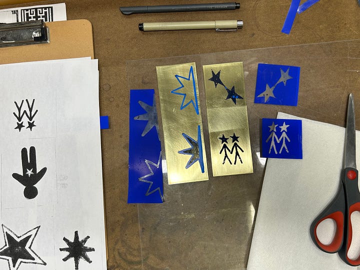 I recently started a weekly jewelry design class and I’m off to a great start on my journey into the silversmithing world. Yay to learning new skills! My overflowing star obsession has naturally become the subject matter of my class projects. Not sure how long the star gaze will last but I’m riding the wave till I hit the shore.