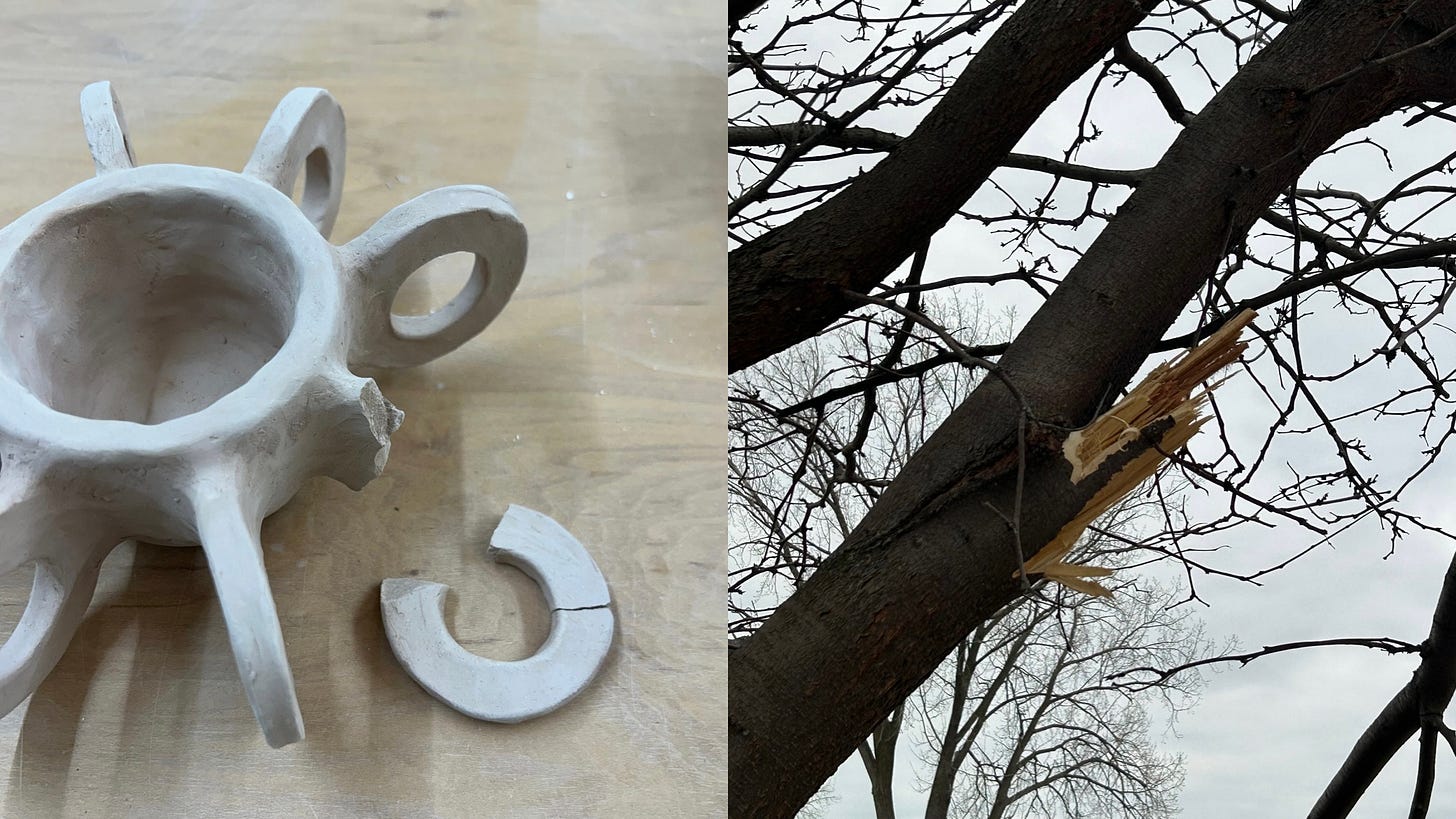 To honor the death brought by winter and visualize the intangible process of letting go, I’ve laid out a clay graveyard. Two works that I made this winter were accidentally damaged by my careless handling. I put a lot work into these pieces but to be fair I’m not sure how much I liked the end results. Instead of going into salvage solution mode, I’ve decided to let them go and become a symbol of what once was. To grief the ideal I had for them, for myself and open room for something else, something better to come my way. I plan to document the slow decay of the clay as the environment around it changes and blooms.
